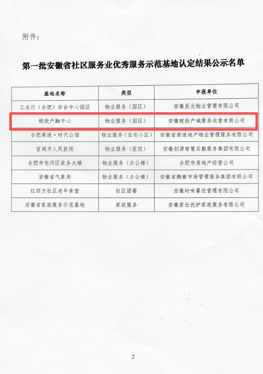 近日,由安徽省社區(qū)服務業(yè)協(xié)會和新安晚報社組織的安徽省社區(qū)服務業(yè)優(yōu)秀服務示范基地評選中,皖投服務公司在管項目皖投·產(chǎn)融中心憑借產(chǎn)業(yè)服務、智慧化管理、多業(yè)態(tài)融合等領域的突出實踐和優(yōu)異表現(xiàn)榮獲“第一批安徽省社區(qū)服務業(yè)優(yōu)秀服務示范基地”。