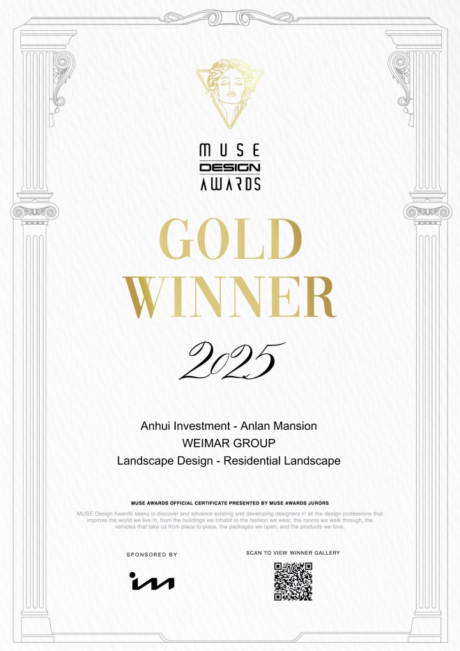 美國Muse設計獎由國際獎項協(xié)會主辦,為全球設計領域重要賽事。皖投·安瀾府憑借建筑與自然環(huán)境和諧共生的設計理念,以及通過科技系統(tǒng)提升室內環(huán)境質量的創(chuàng)新實踐,在景觀設計類別中脫穎而出,榮獲金獎。這一榮譽既是對項目美學設計的肯定,也是對其“以人為本、健康宜居”理念的國際認同。