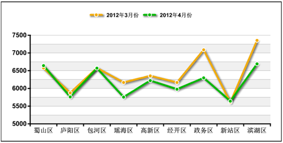 2012年3月份份合肥住宅區(qū)屬銷售均價及環(huán)比變化情況一覽圖