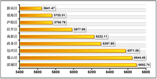 本月期間的政務(wù)區(qū)和濱湖區(qū)的銷售均價是較之上月期間出現(xiàn)了大幅度下跌的現(xiàn)象。政務(wù)區(qū)湖東景園項目本月期間的銷售量提升拉倒了區(qū)屬的銷售均價,使得政務(wù)區(qū)成為區(qū)屬銷售均價下跌幅度最大的區(qū)域,而濱湖區(qū)旭輝御府銷售量的大幅度上漲也一定程度的拉低了濱湖區(qū)的銷售均價。