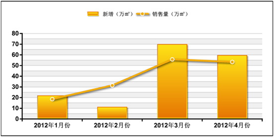 2012年4月份合肥市住宅類商品房供銷狀況變化圖(面積)