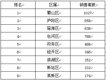 4月份全市區(qū)屬住宅銷售套數(shù)排行榜