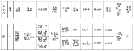 據(jù)合肥招標(biāo)投標(biāo)中心網(wǎng)公告顯示,包河區(qū)S1203號(hào)宗地座落于南二環(huán)路與宿松路西南交口,四至范圍:東至宿松路、南至黟縣路規(guī)劃中心線、西至宏村路規(guī)劃中心線、北至南二環(huán)路,出讓面積達(dá)116.61畝。分為B03、B06兩個(gè)地塊,其中,B03地塊規(guī)劃用于商業(yè)辦公,出讓40年、容積率≤6.7;B06地塊規(guī)劃用于商業(yè)辦公住宅,商業(yè)辦公出讓40年,住宅出讓70年,容積率1.0 &l;R&l; SPAN&g;≤4.6。參考地價(jià)400萬/畝,繳納競買保證金1億元。
