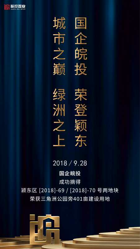 2018年9月28日下午15時(shí),在阜陽市公共資源交易中心,皖投置業(yè)公司通過招拍掛成功競得阜陽市2018-69號(hào)宗地、2018-70號(hào)宗地,合計(jì)總面積401.412畝。