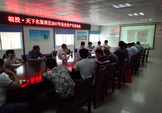 2017年6月16日,合肥天下名筑項(xiàng)目召開2017年安全生產(chǎn)月啟動會,項(xiàng)目部、中建五局、遠(yuǎn)信監(jiān)理相關(guān)負(fù)責(zé)人參加。