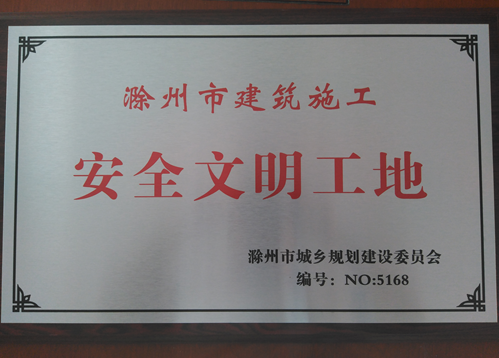 2016年8月31日,滁州市城鄉(xiāng)規(guī)劃建設(shè)委員會評審工作組蒞臨水岸星城綜超項目工地現(xiàn)場,對現(xiàn)場安全文明情況進(jìn)行實地考核。經(jīng)過考評,皖投·水岸星城二期綜超項目榮獲“滁州市建筑施工安全文明工地”稱號。