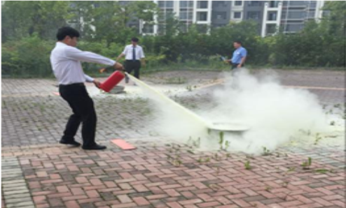 按照酒店滅火演練方案,演練活動在酒店北停車場舉行,保安事先疏導車輛停放到安全區(qū)域遠離演練現(xiàn)場。下午14時,酒店員工準時到滅火演練指定地點集合,綜保部人員做好布置演練火場準備,救援組負責隨時救護傷員。演練開始前,首先由安保部主管講解消除火災(zāi)隱患排查,宣講消防安全“四個能力”知識,消防安全注意事項,示范滅火器的使用方法。隨后,員工按部門依次兩兩一組,進行滅火器滅火操作,演練過程緊張有序。