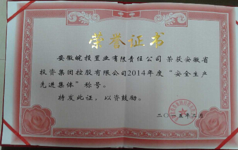 公司榮獲2014年度“安全生產(chǎn)先進(jìn)集體”稱號(hào)