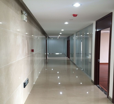 工程共分為三個施工部分,即辦公區(qū)、公共走道及機電安裝。為確保如期完工,根據(jù)現(xiàn)場實際情況,各區(qū)域同時施工,工序上采取分項小工序之間平行流水施工作業(yè),質(zhì)量上從材料到工藝層層把關(guān),在時間緊、工程量大的情況下,終于如期順利移交并得到集團公司的認可。