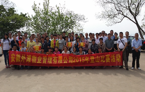 2015年4月24日上午,安徽外灘物業(yè)管理有限公司組織員工前往大蜀山舉辦登山比賽活動。此次活動的主題為“凝心聚力謀發(fā)展,文化引領(lǐng)攀高峰”。