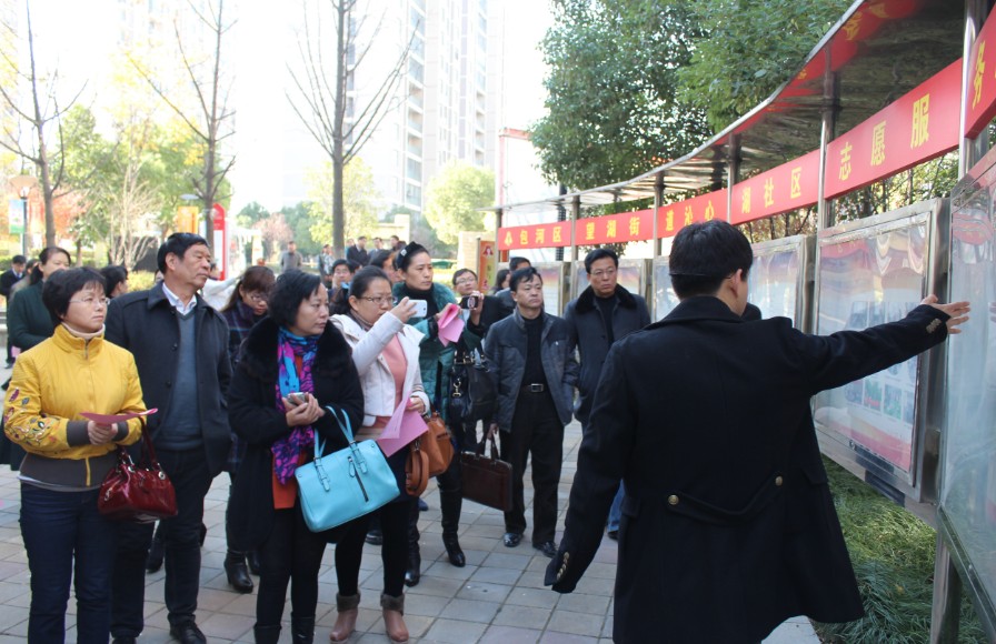 為進(jìn)一步加強(qiáng)基層思想政治工作,切實(shí)提升城區(qū)街道鄉(xiāng)鎮(zhèn)黨委宣傳干部綜合素質(zhì)及開展思想政治工作的能力。11月29日上午,由省委宣傳部組織全省、市、區(qū)、街道,各街道鄉(xiāng)鎮(zhèn)黨委宣傳委員或分管負(fù)責(zé)人,各開發(fā)區(qū)工委辦分管負(fù)責(zé)人等約100余人蒞臨外灘物業(yè)月桂苑沁心湖社區(qū)參觀。
