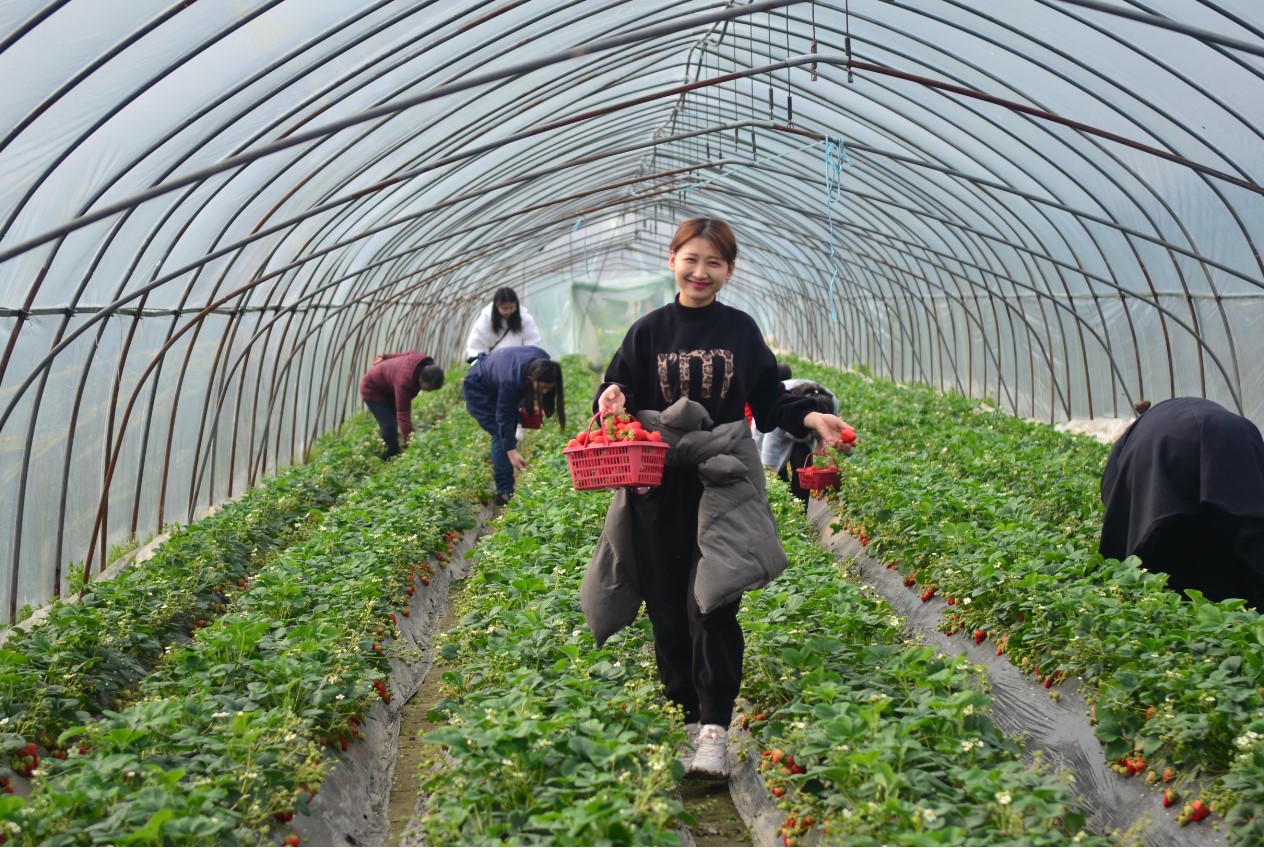 活動(dòng)當(dāng)天8:40,女職工們集體乘車,一路歡聲笑語的來到了大圩草莓基地。大棚中一個(gè)個(gè)紅彤彤的草莓“躺”在綠油油的嫩葉間,如同一盞盞小紅燈籠,十分誘人。新鮮的草莓個(gè)頭飽滿,透著鮮紅的色澤。女職工們拎著采摘籃一顆一顆將草莓摘下,滿滿一筐的新鮮草莓印著她們的臉更加紅艷。有的更是摘下后立刻送入口中,享受著新鮮甜美的草莓滋味。