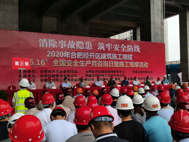 6月16日上午,經(jīng)開(kāi)區(qū)建筑施工領(lǐng)域安全生產(chǎn)月咨詢?nèi)蒸呤┕び^摩活動(dòng)在產(chǎn)融中心項(xiàng)目圓滿舉行,市城鄉(xiāng)建設(shè)局、經(jīng)開(kāi)區(qū)管委會(huì)、安徽皖投置業(yè)有限責(zé)任公司、經(jīng)開(kāi)區(qū)應(yīng)急管理相關(guān)領(lǐng)導(dǎo)、經(jīng)開(kāi)區(qū)各在建項(xiàng)目建設(shè)單位負(fù)責(zé)人、監(jiān)理單位總監(jiān)理工程師、施工單位項(xiàng)目經(jīng)理及技術(shù)負(fù)責(zé)人、安全員等300余人參加活動(dòng)。