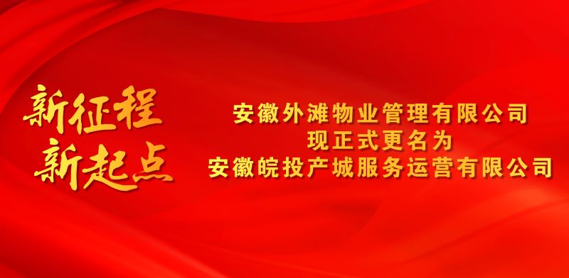 2021年1月26日,經安徽省市場監(jiān)督管理局審核,“安徽外灘物業(yè)管理有限公司”正式更名為“安徽皖投產城服務運營有限公司”。