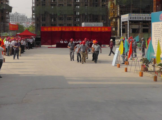 為進一步加強項目建設安全生產(chǎn)應急預案體系建設,提高應對突發(fā)生產(chǎn)安全事故的能力,2012年6月25日下午,集團公司安委會、置業(yè)公司與安徽三建公司、監(jiān)理公司等單位共同舉行了應急演練活動。