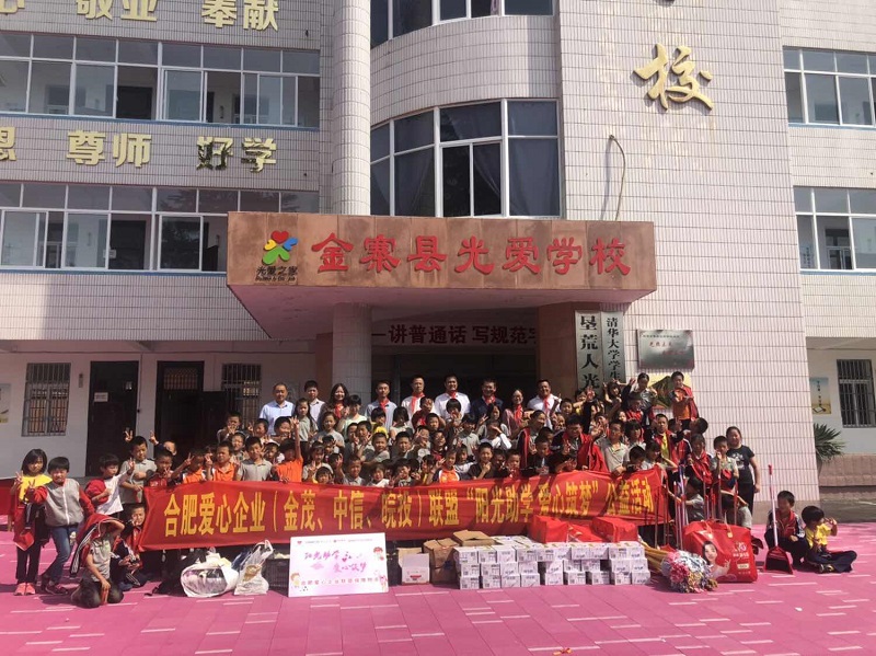 喜迎七十華誕,感恩偉大祖國,為積極踐行國企社會責(zé)任,公司聯(lián)合中國金茂合肥公司、中信銀行合肥望江西路支行共同成立“陽光助學(xué) 愛心筑夢”——合肥愛心企業(yè)聯(lián)盟,于9月25日、26日開展愛心助學(xué)活動,先后走進金寨縣燕子河初級中學(xué)、水竹坪實驗學(xué)校水坪教學(xué)點、金寨縣光愛學(xué)校?;顒忧?,公司積極與學(xué)校溝通,按需捐助,同時發(fā)動公司員工積極捐物,奉獻點點愛心。