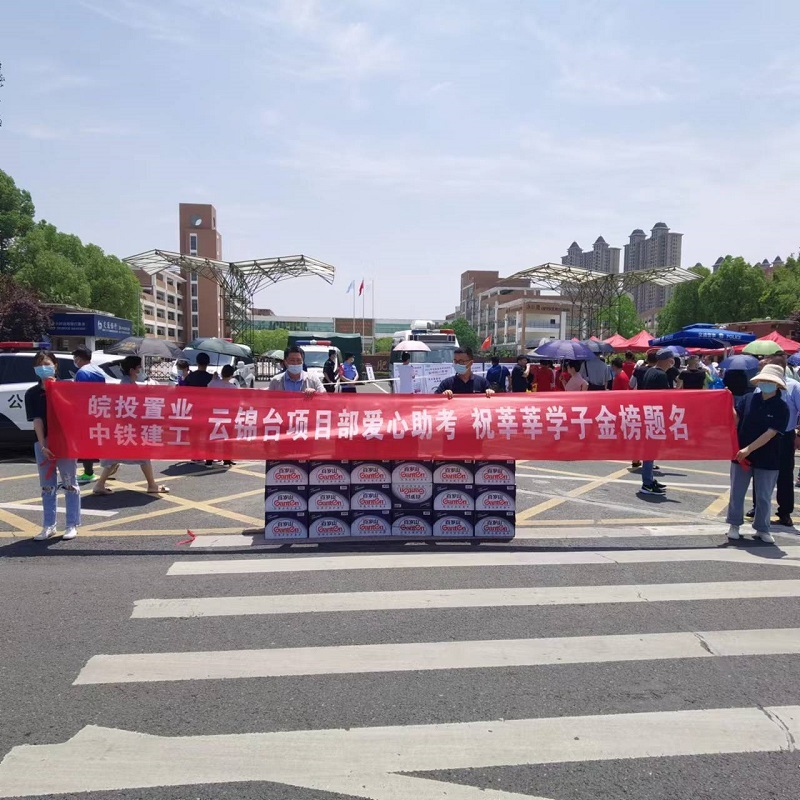 一年一度的高考拉開序幕,莘莘學子即將奔赴考場,為夢起航。2022年6月7日上午,由皖投置業(yè)與中鐵建工云錦臺項目部聯(lián)合組織的主題為“云錦臺項目部愛心助考 祝莘莘學子金榜題名”的愛心助考拉開帷幕。此次活動在合肥市168中學設置了愛心助考點,為廣大考生、陪考家長、老師及考點執(zhí)勤交警等送上了陣陣清涼和滿滿祝福。