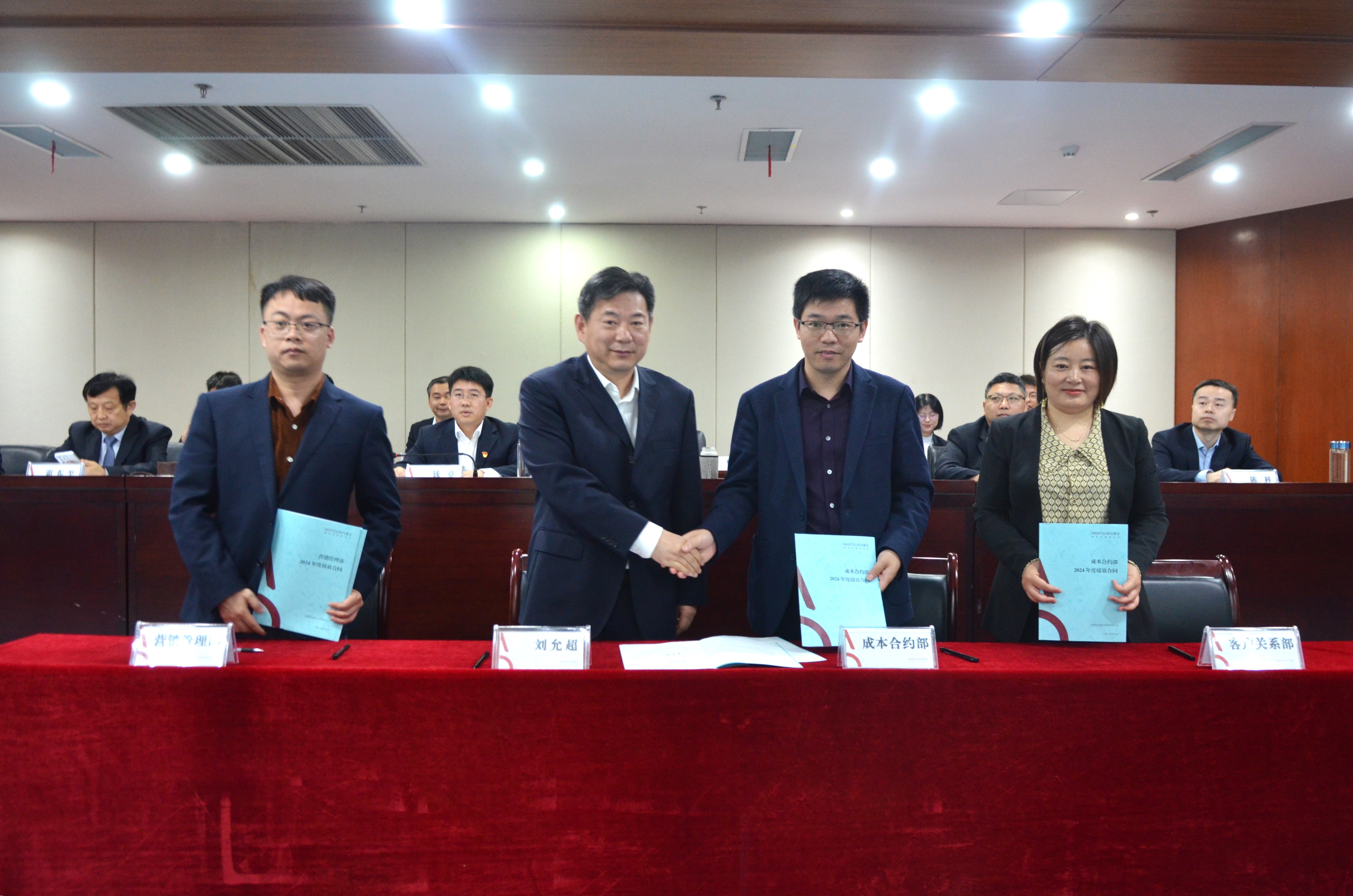 會(huì)上,劉允超代表公司經(jīng)營(yíng)班子,與總部部室、項(xiàng)目公司代表現(xiàn)場(chǎng)簽署了2024年度績(jī)效合同。