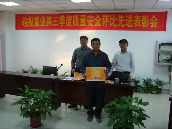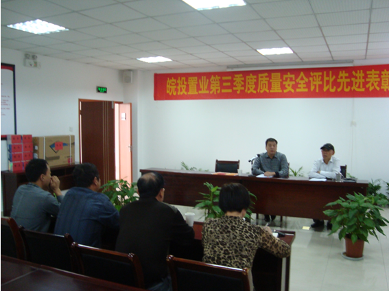 2012年10月15日下午,項目管理總監(jiān)丁昌華在公司會議一室主持召開了2012年三季度質量安全評比表彰會,工程管理部,皖投置業(yè)各項目部、施工單位、監(jiān)理單位的項目負責人及相關人員參加。