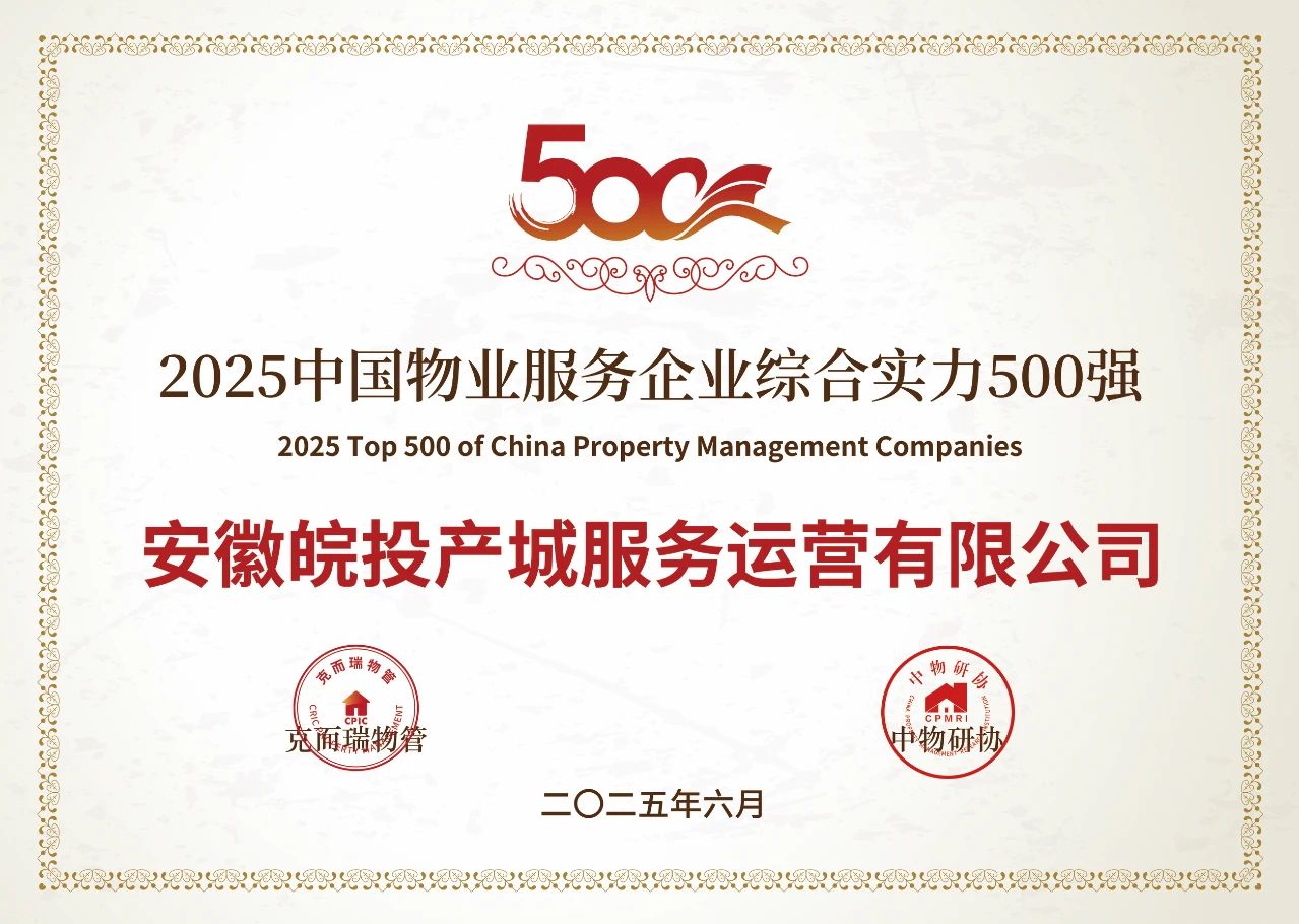 近日,在克而瑞物管權(quán)威發(fā)布的“2025中國物業(yè)服務企業(yè)綜合實力研究成果”中,安徽皖投產(chǎn)城服務運營有限公司憑借卓越的綜合實力與創(chuàng)新服務能力成功入選“2025中國物業(yè)服務企業(yè)綜合實力500強”、“2025中國產(chǎn)業(yè)園區(qū)物業(yè)服務領(lǐng)先企業(yè)”。